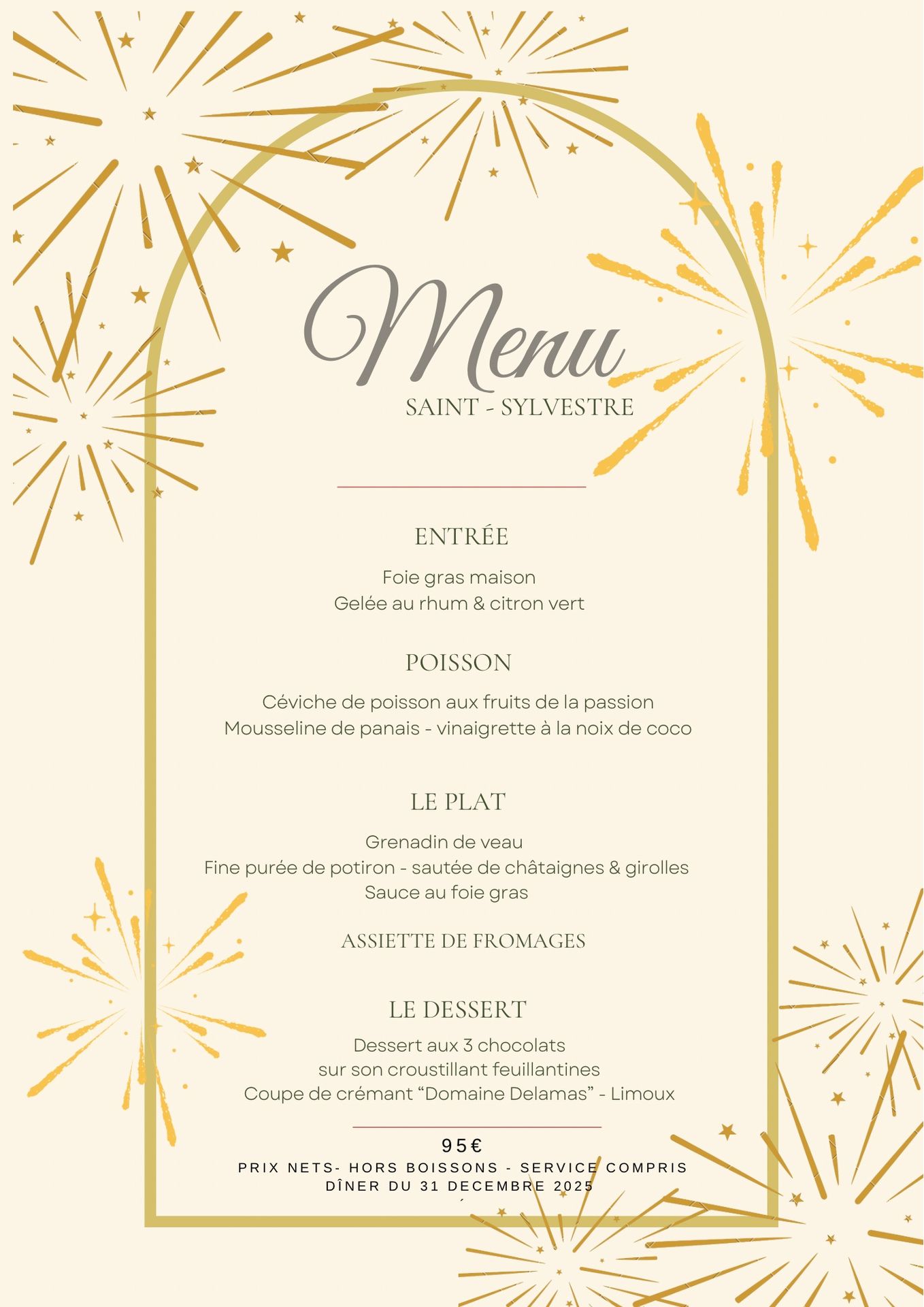 Célébrez la Saint-Sylvestre autour d’un repas d’exception, pour marquer la fin de l’année en beauté. Un dîner raffiné pour accueillir la nouvelle année dans la joie et la convivialité. Réservez dès maintenant et faites de ce réveillon un moment inoubliable !